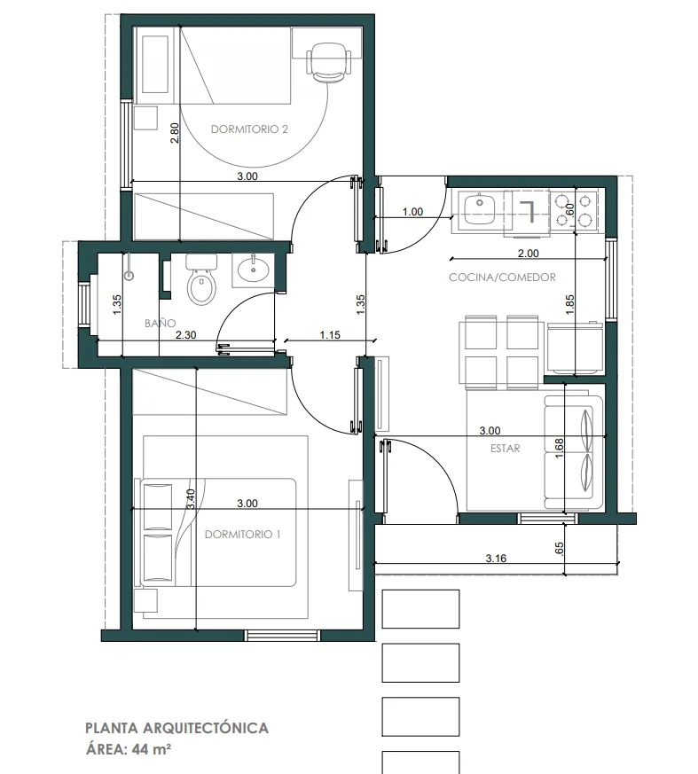 Puedes elegir el estilo de la casa y la cantidad de m2 de construcción según tu crédito aprobado.
